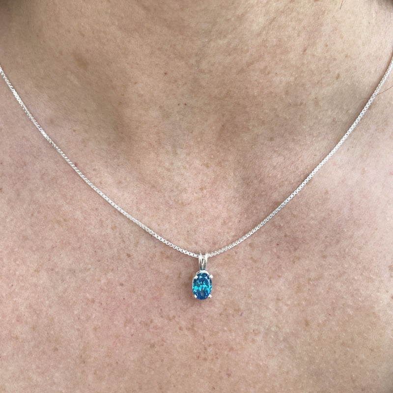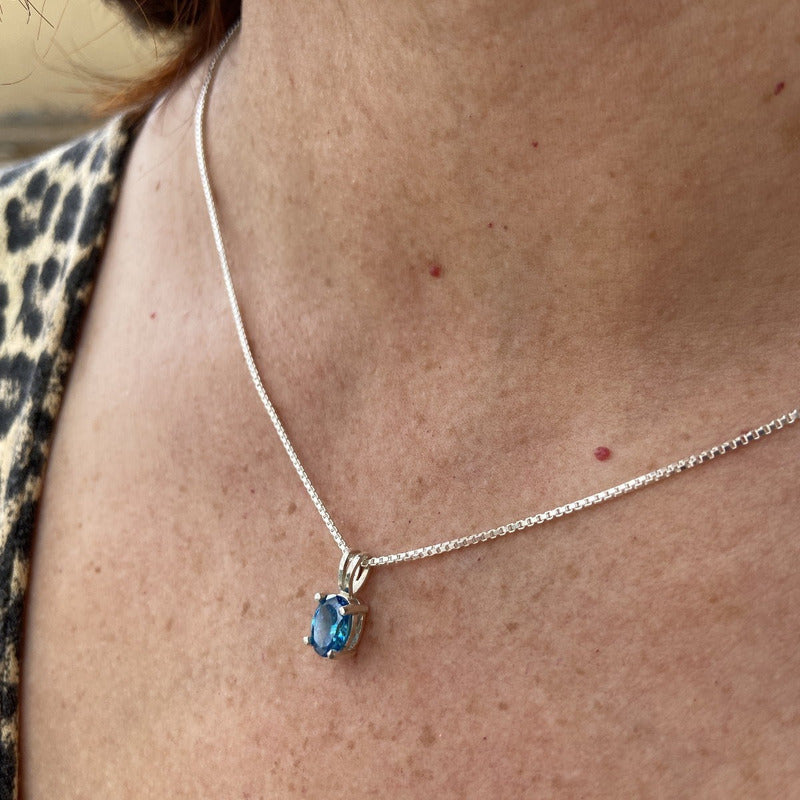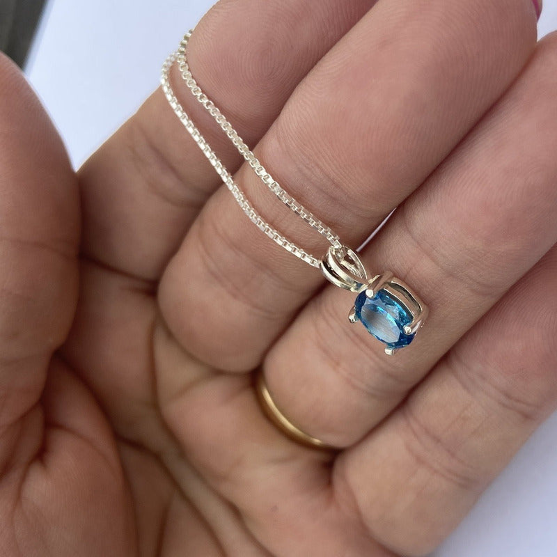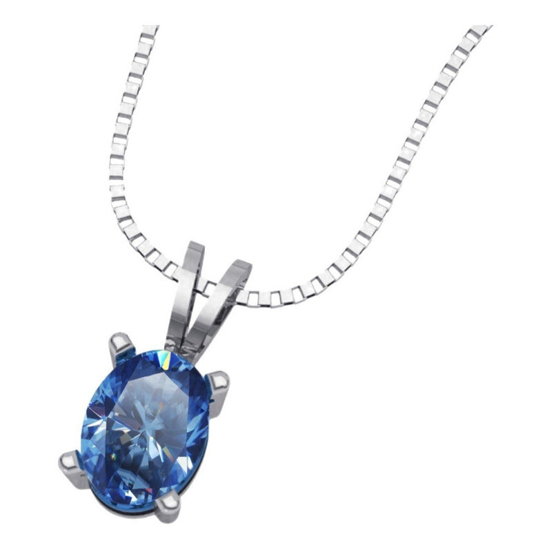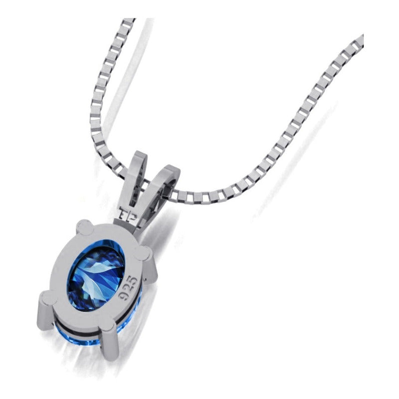 Colar Topázio Azul Prata 925 Oval 8x6mm- Corrente Veneziana
