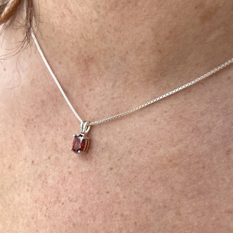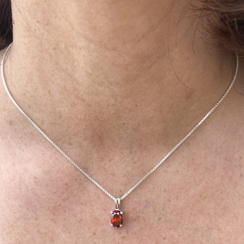 Colar Granada Prata 925 Oval 8x6mm- Corrente Veneziana Modelo: Oval Pedra: Granada Metal: Prata 925 Tamanho da Pedra: 6x8mm Tamanho do Pingente: 10mm X 6mm Acabamento: Polido a mão Corrente: Veneziana 45.0cm Peso: 3.5 gramas (Aprox). **CERTIFICADO DE GARANTIA E AUTENTICIDADE** ................GARANTIA ETERNA.............. Garantimos teor da Prata 925. Garantia vitalícia para polimentos. Nossa garantia não inclui defeitos provenientes de mau uso e danos às pedras. "E não vos conformeis a este mundo, mas transformai-vos pela renovação da vossa mente, para que experimenteis qual seja a boa, agradável, e perfeita vontade de Deus. Romanos 12:2"