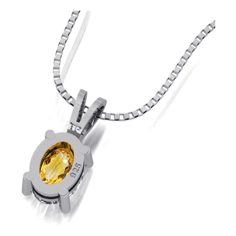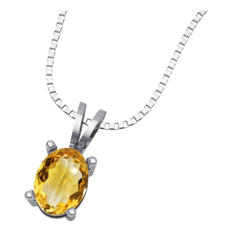 Colar Citrino Prata 925 Oval 8x6mm - Corrente Veneziana
