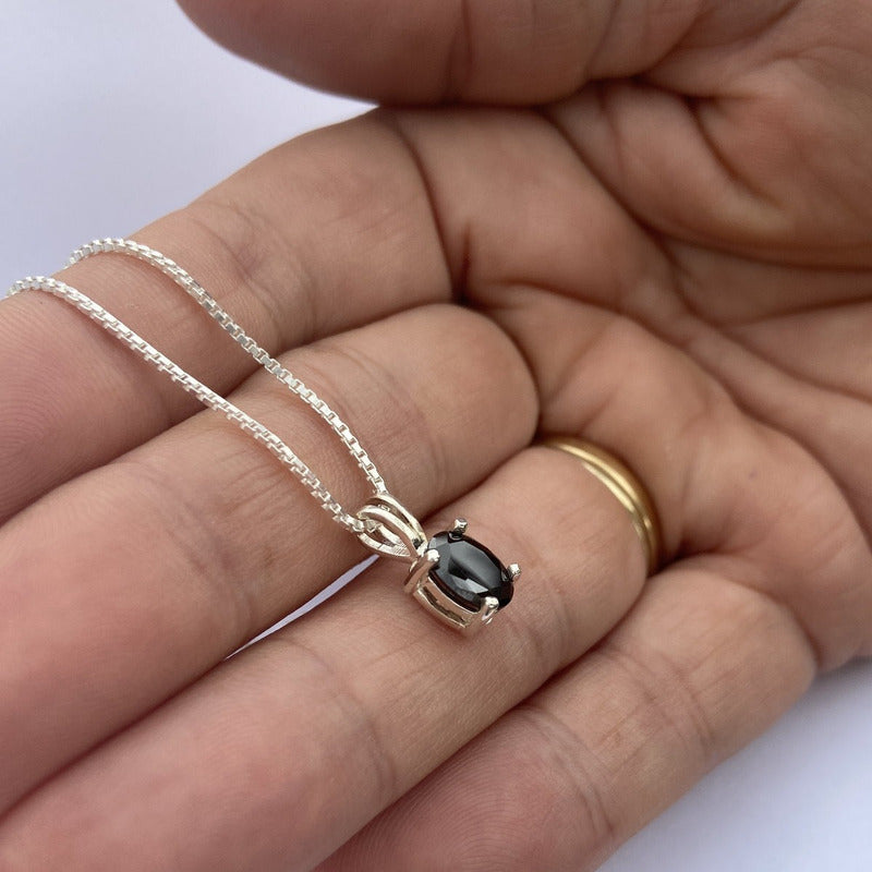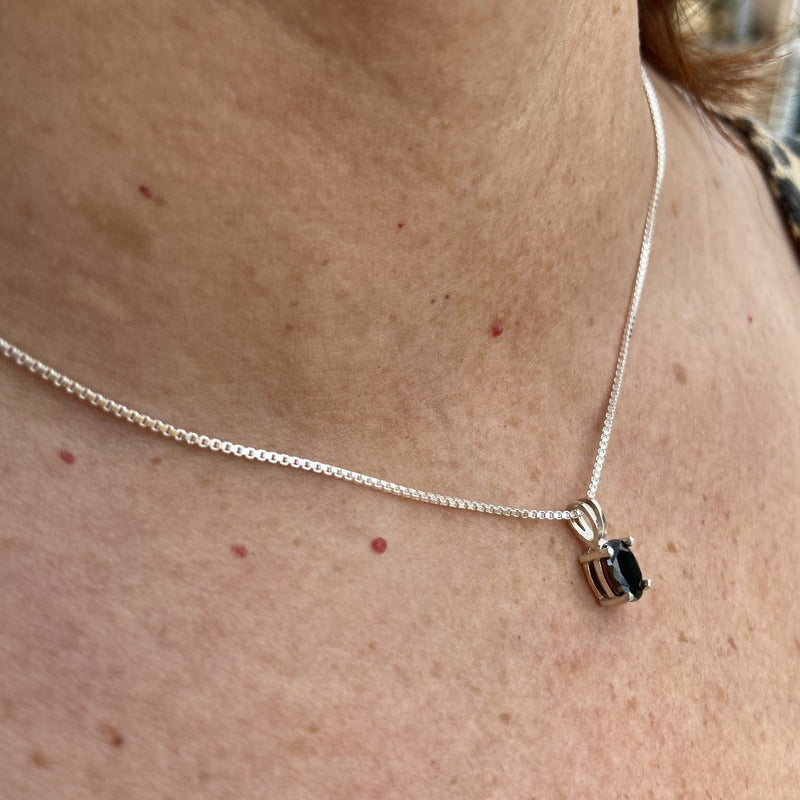 Colar Black Onix Prata 925 Oval 8x6mm - Corrente Veneziana