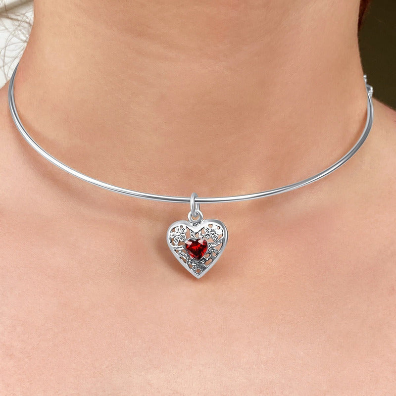 Colar Choker Filigrana Coração Prata 925 Granada Exclusivo