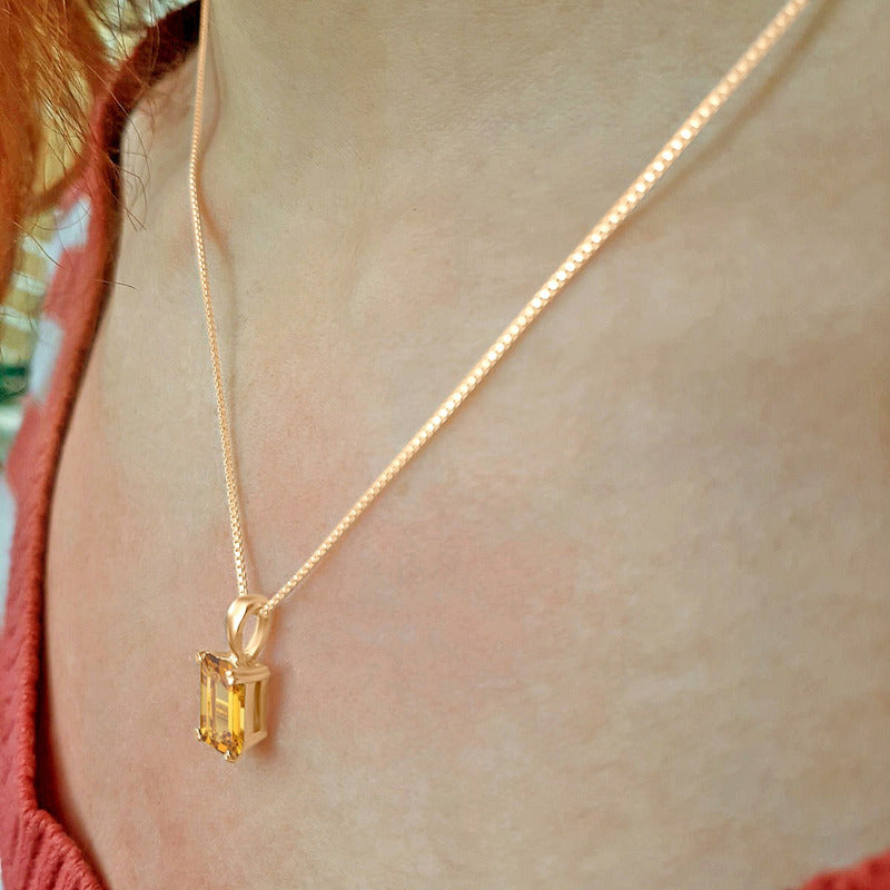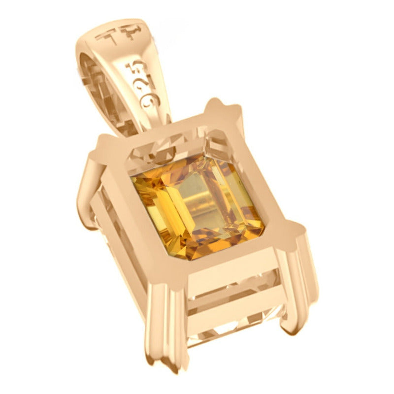 Pingente Retangular Prata 925 Dourada18k - Citrino