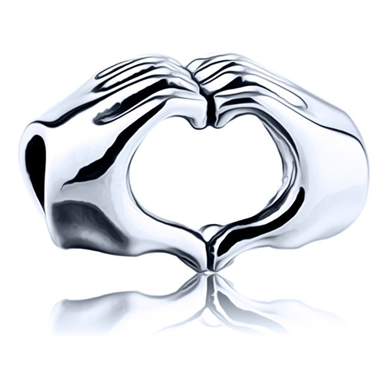 Charm Berloque Coração Com As Mãos Prata 925 - Exclusivo