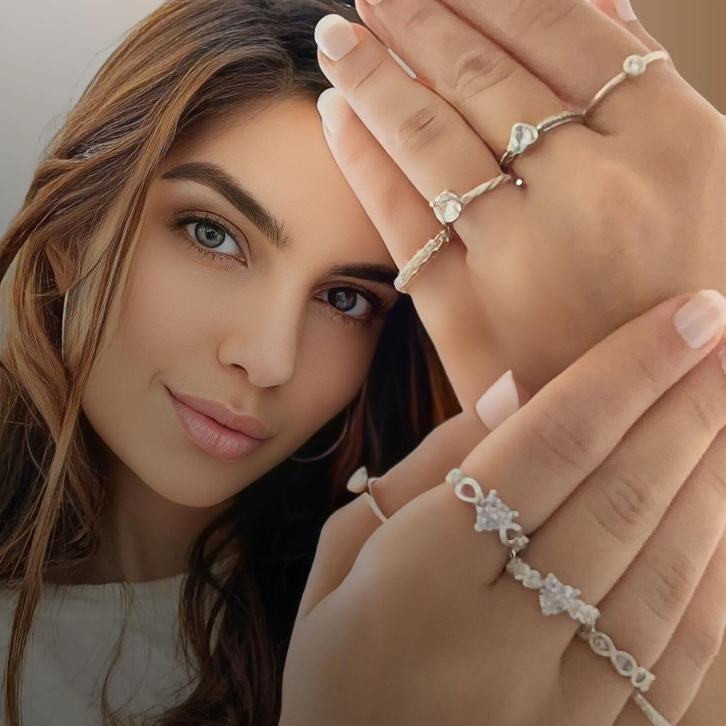 2 X Aneis Corações E Estrelas Pura Prata 925 - Exclusivo