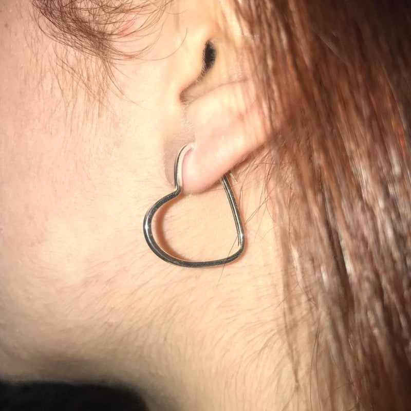 Brinco Argola Pequena De Prata 925 Coração - 25mm Feminina