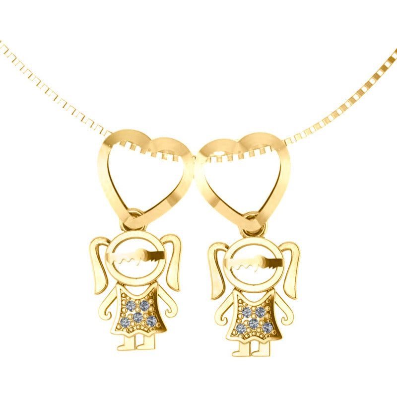 Colar Canga 2 Meninas Zircônias Prata 925 Dourada Ouro 18k
