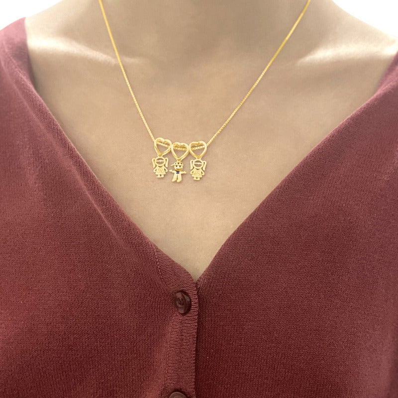 Colar Canga 2 Meninas 1 Menino - Prata 925 Dourada Ouro 18k