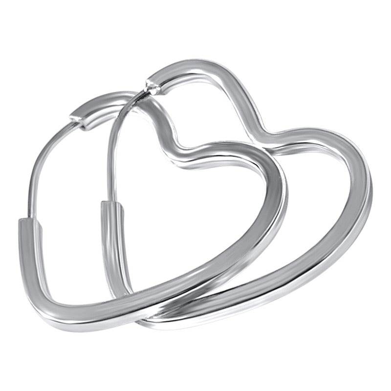 Argola Brinco Coração Prata 925- 2cm - Tubo Quadrado