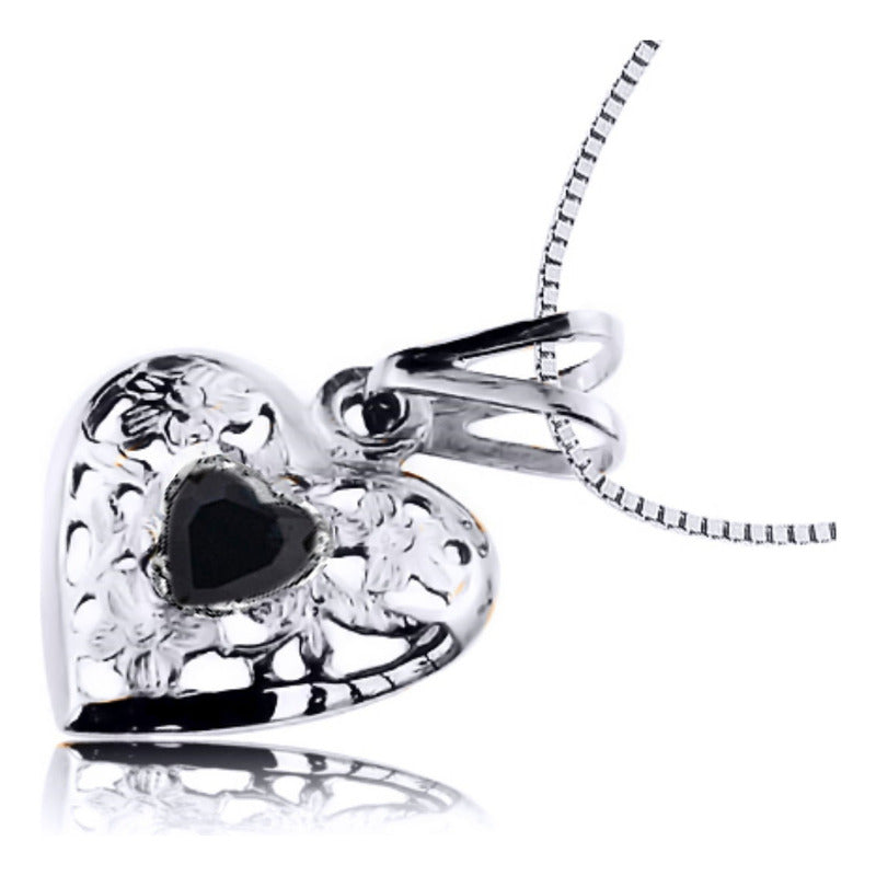 Colar Filigrana Coração Prata 925 Onix - Exclusivo