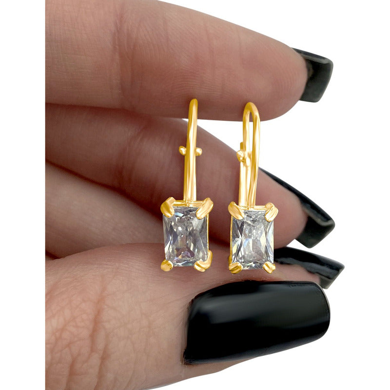Brinco Trava Retangular Prata 925 Dourada Ouro 18k- Zircônia
