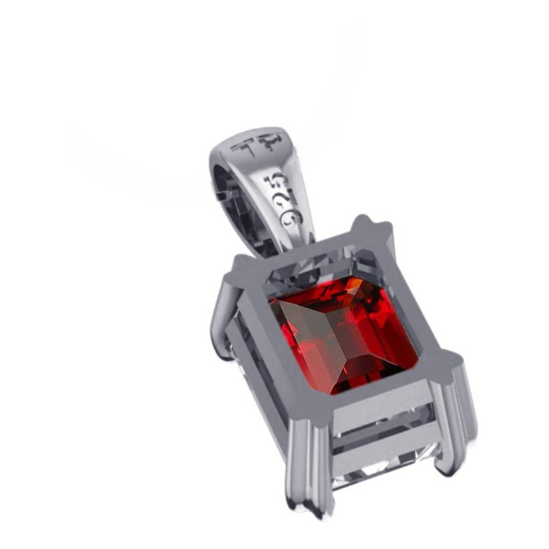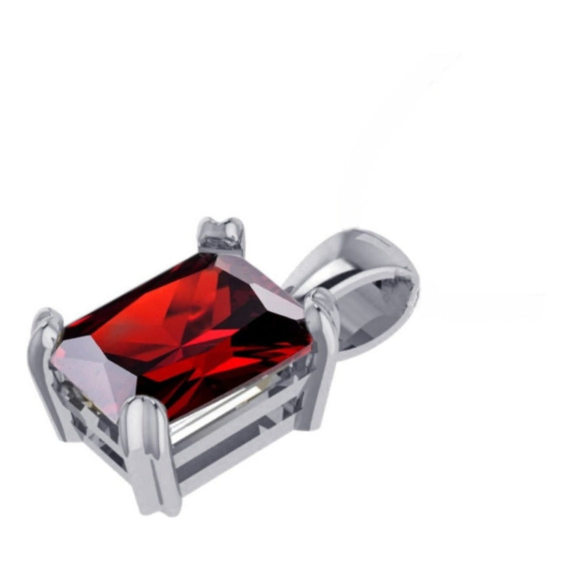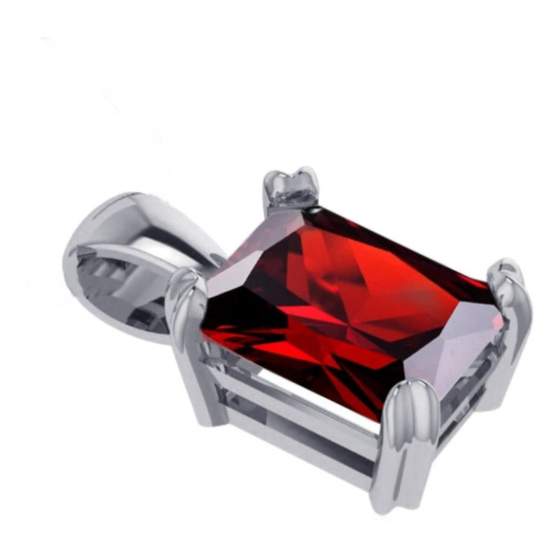 Pingente Retangular Prata Zircônia Vermelha Unissex