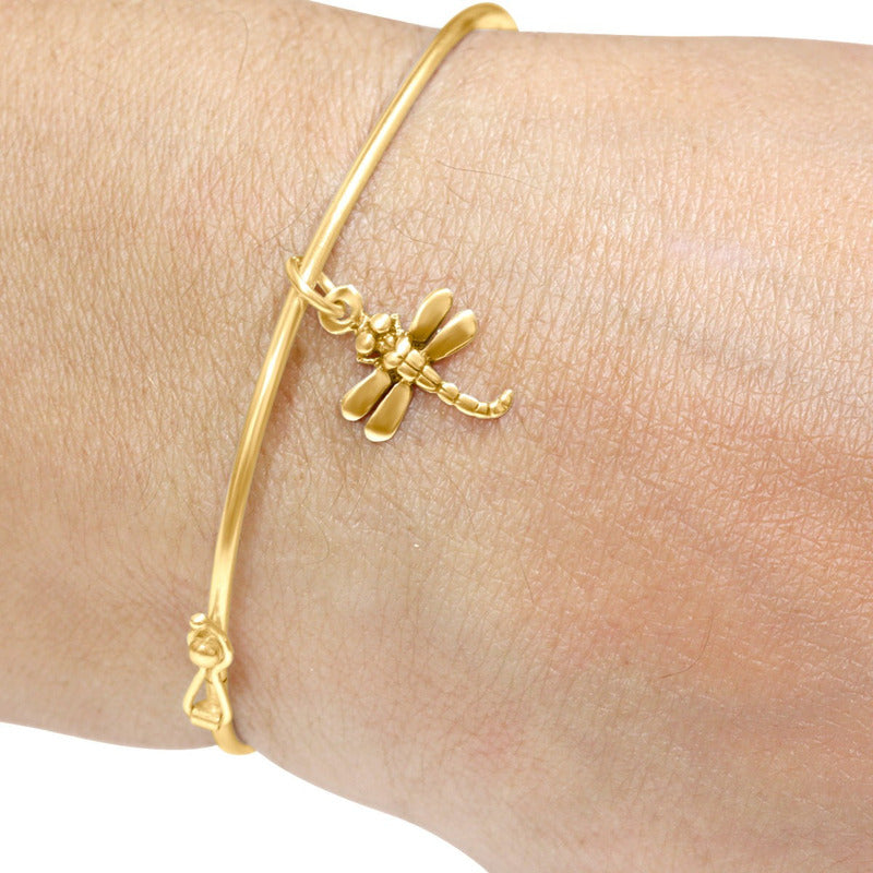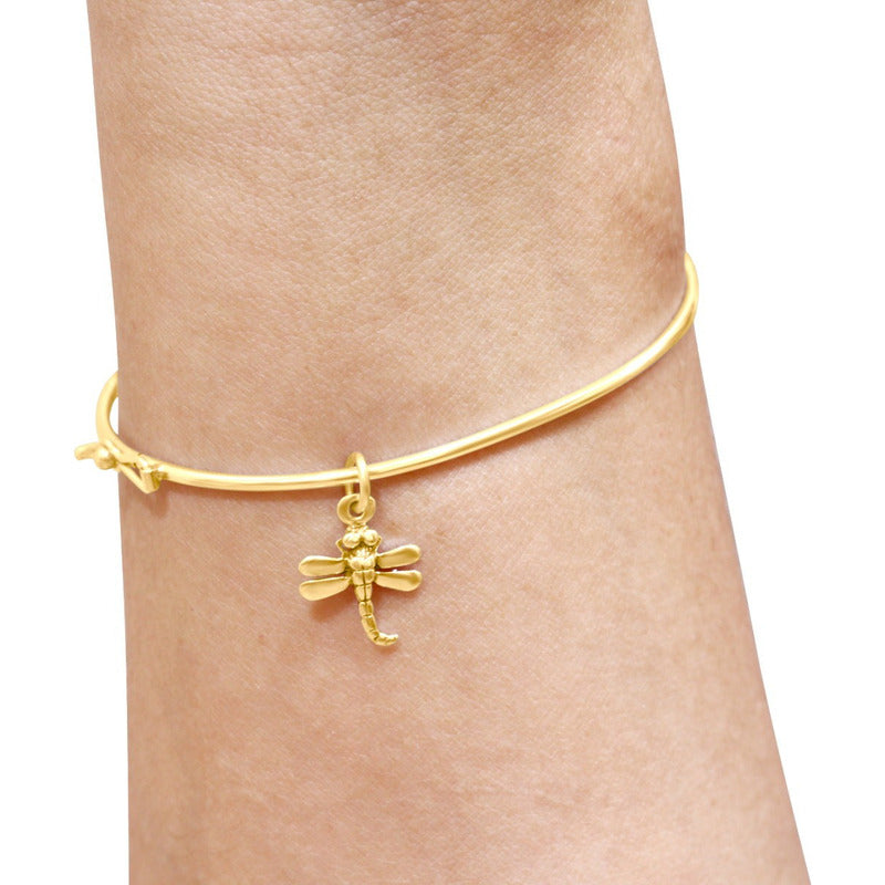 Bracelete Rígido Prata 925 Dourada 18k - Libélula