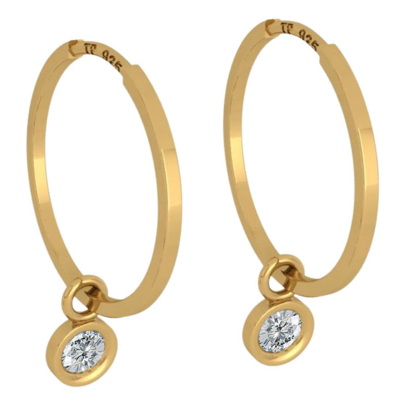 Brinco Argola Prata 925 Dourada 18k Ping Redondo- Zircônia