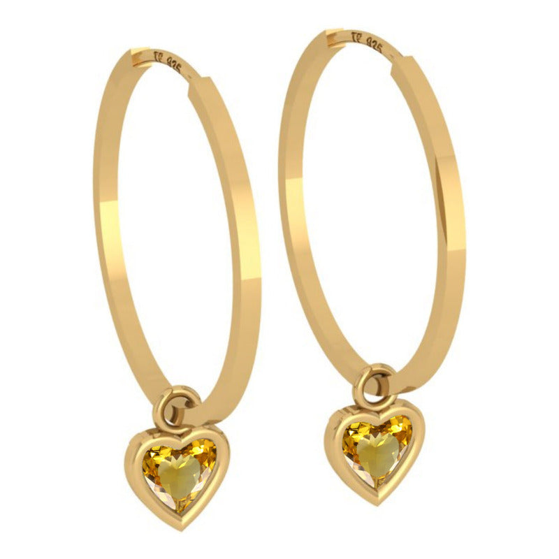 Brinco Argola Prata 925 Dourada 18k Pingente Citrino Coração