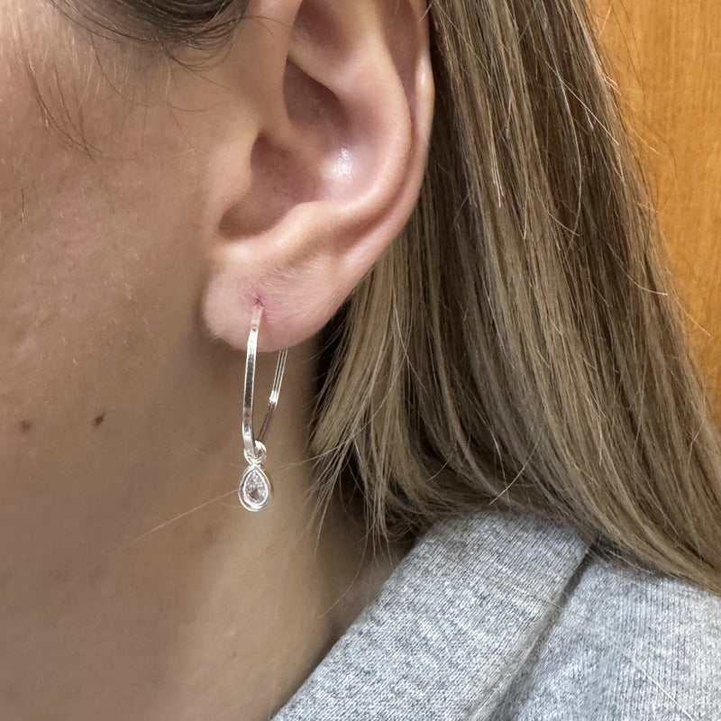 Brinco Argola Hexagonal Prata 925 Pingente Gota - Zircônia
