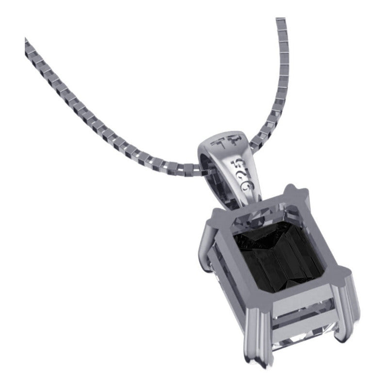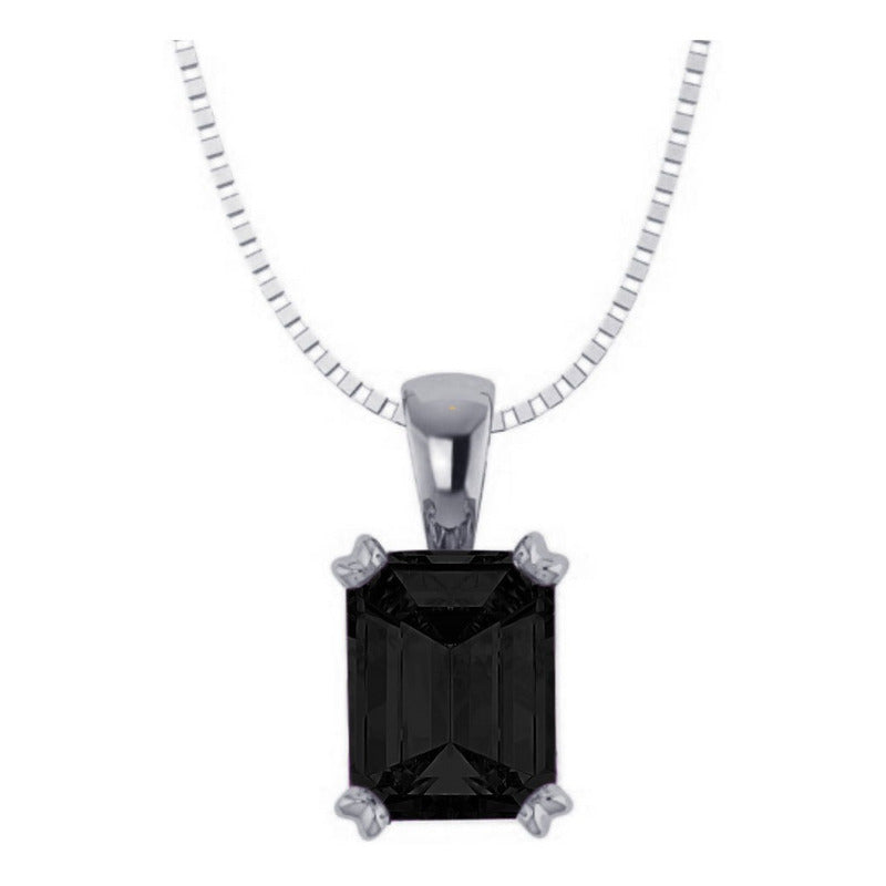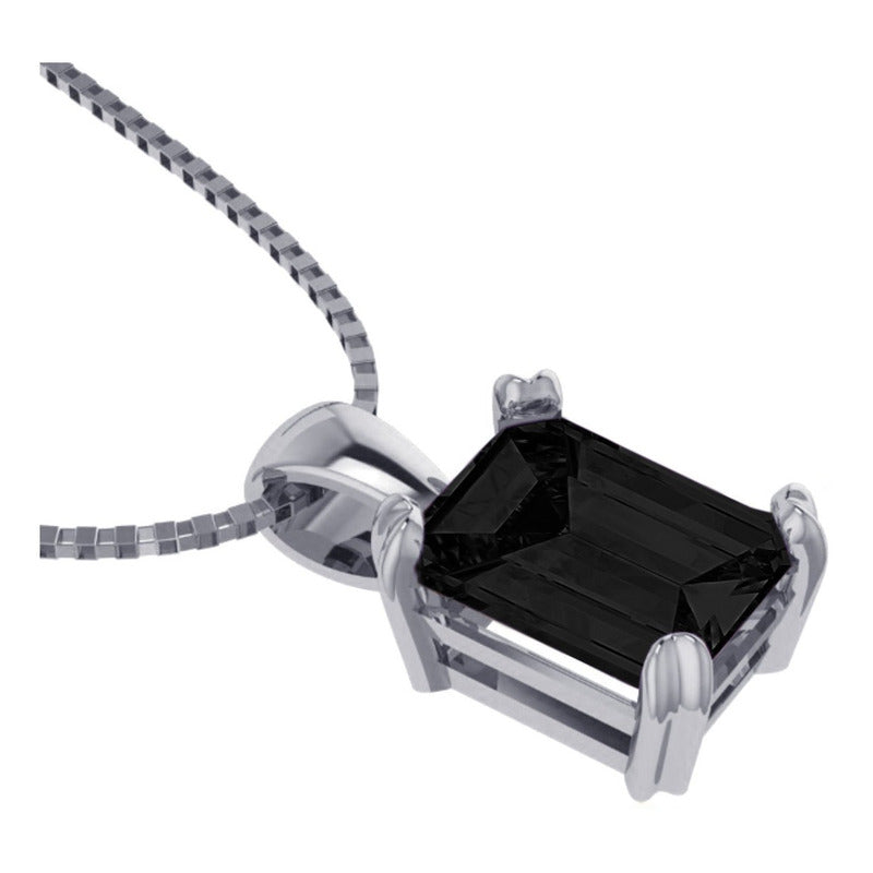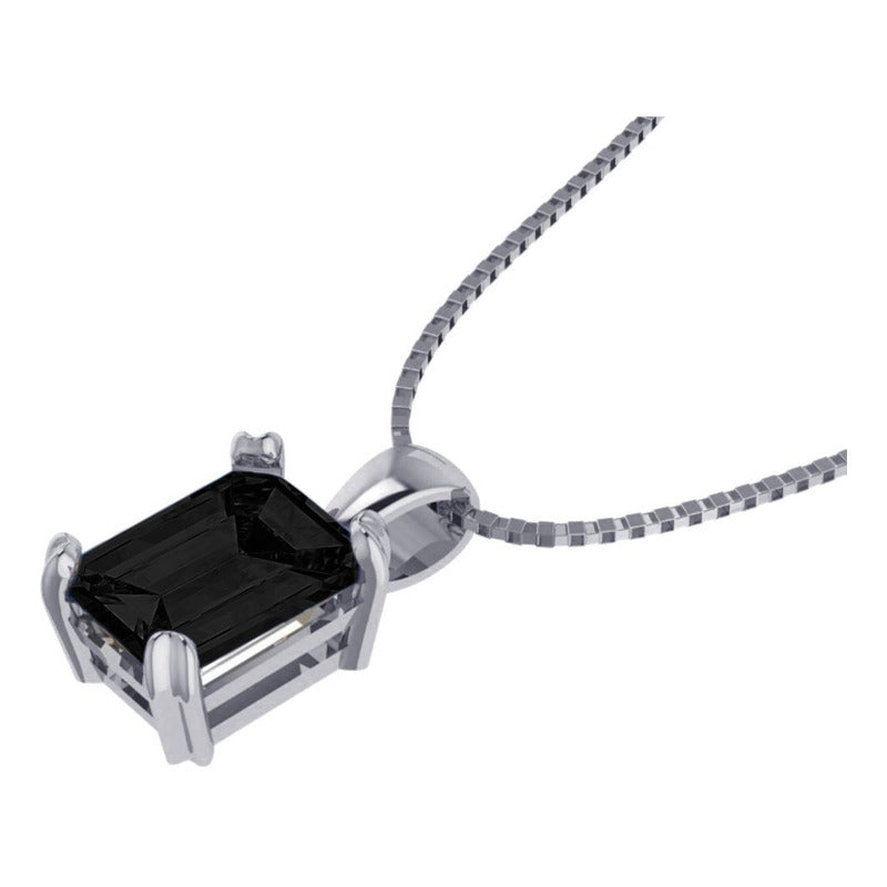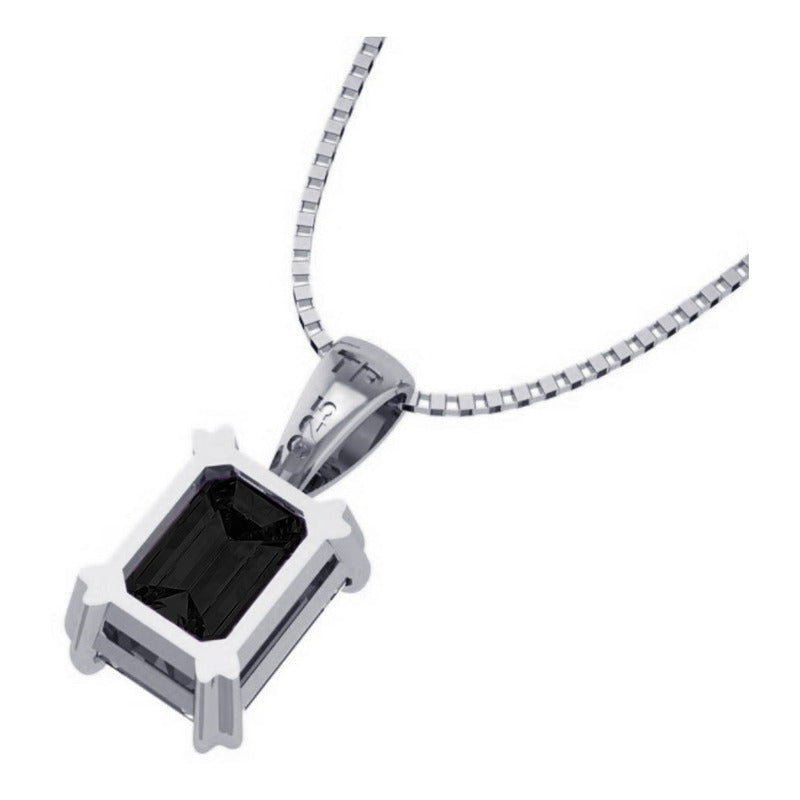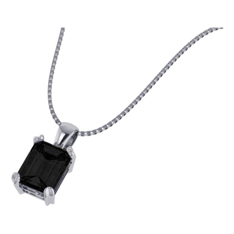Colar Prata 925 Retangular Black Onix Natural - Exclusivo