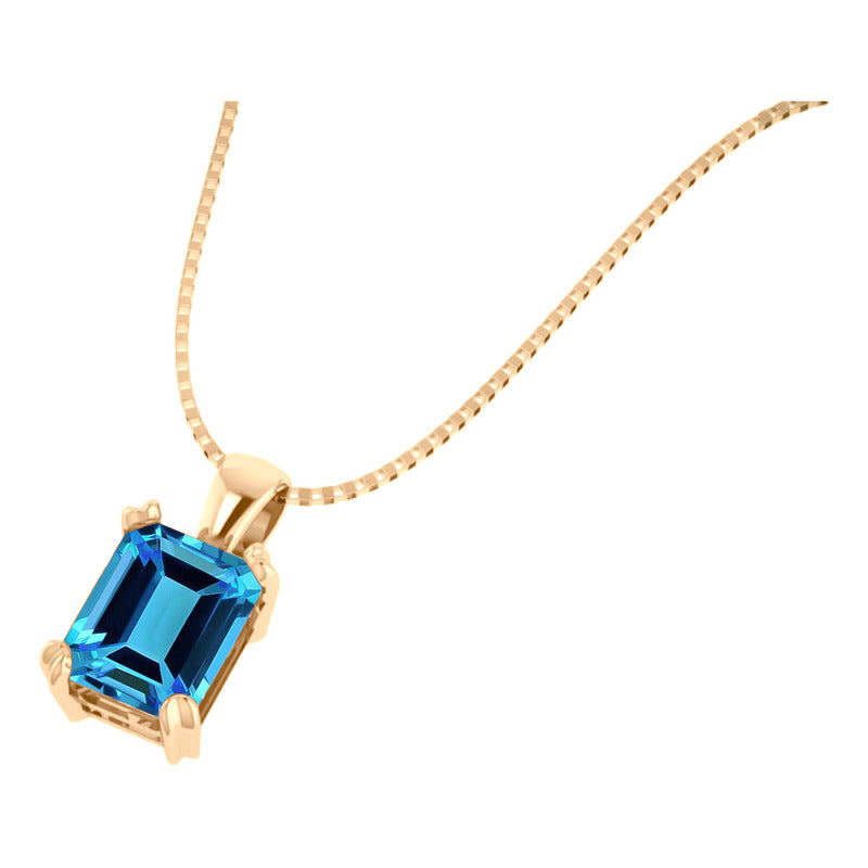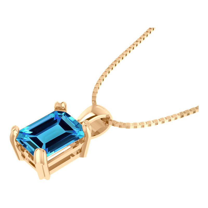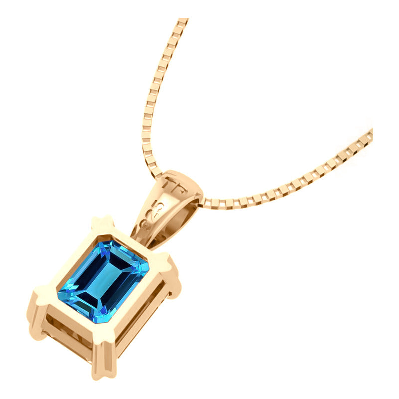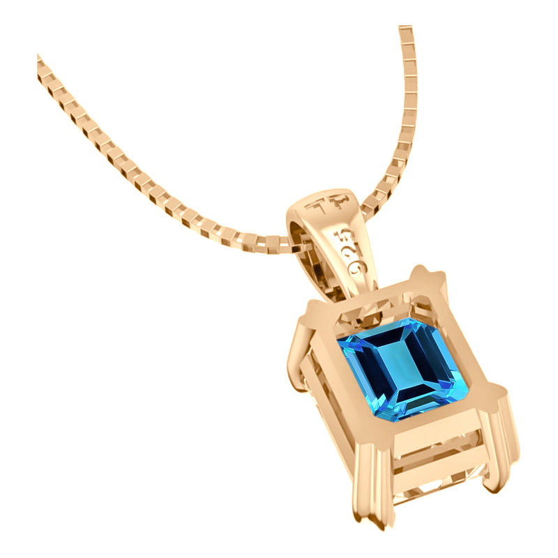 Colar Pingente Retangular Prata 925 Dourada 18k Topázio Azul