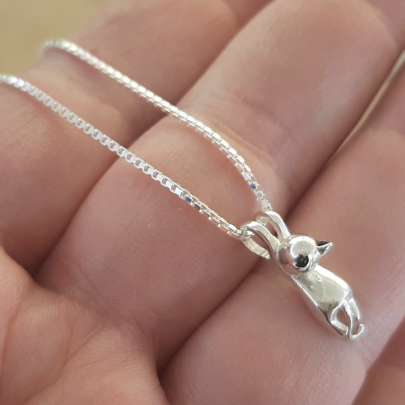 Colar Gargantilha 45cm Gatinho Agarradinho Pura Prata 925