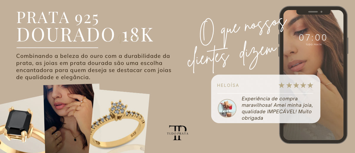 A prata dourada 18k é feita de prata 925 e é banhada com três camadas espessas de ouro. Essa combinação de materiais de alta qualidade garante que a peça seja mais resistente à corrosão e à reação com a pele, evitando o problema da coloração verde comum em peças folheadas. Portanto, se você procura por joias que não causem esse efeito indesejado na sua pele, a prata dourada 18k é uma ótima escolha.
