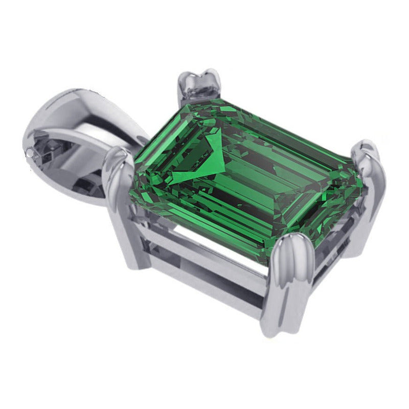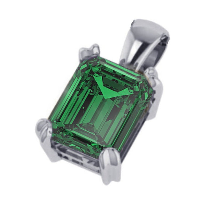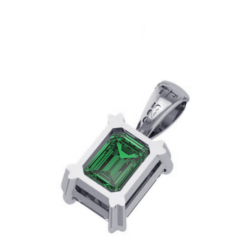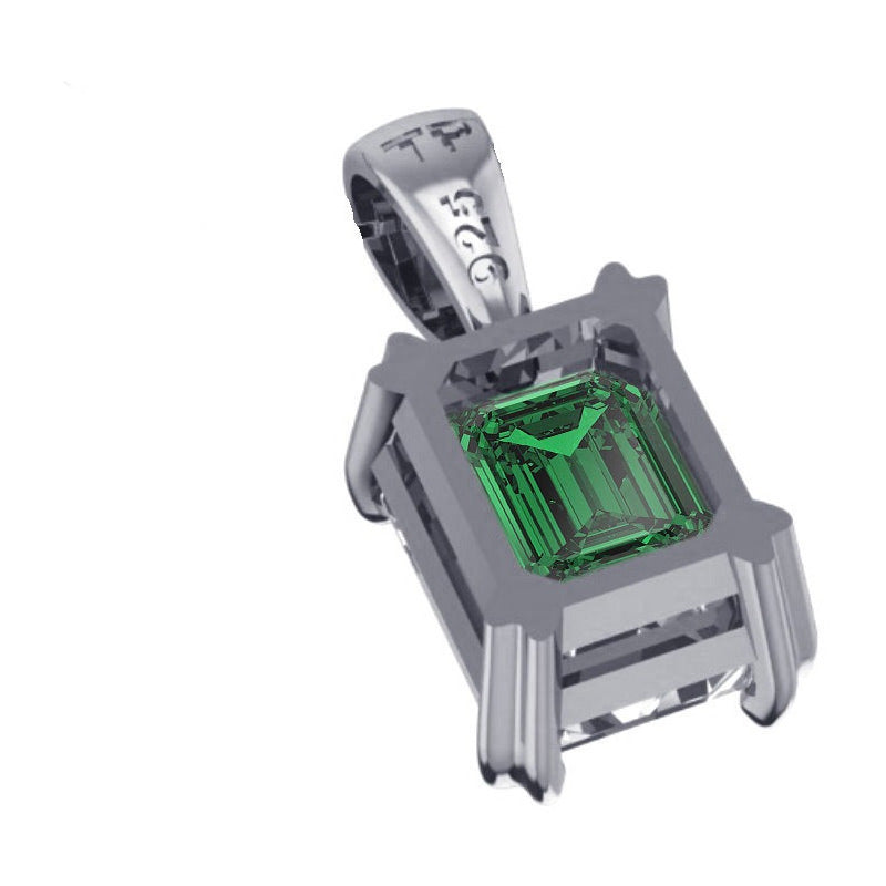 Pingente Prata 925 Retangular Esmeralda Unissex - Exclusivo