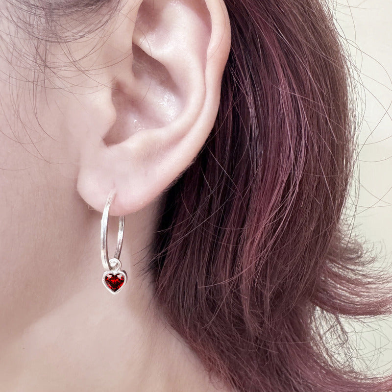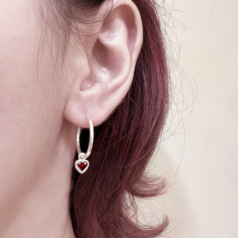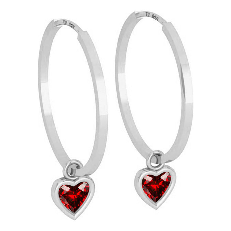 Brinco Argola Prata 925 Pingente Coração - Granada