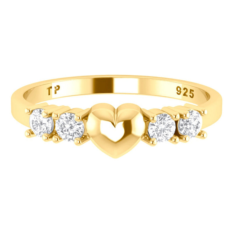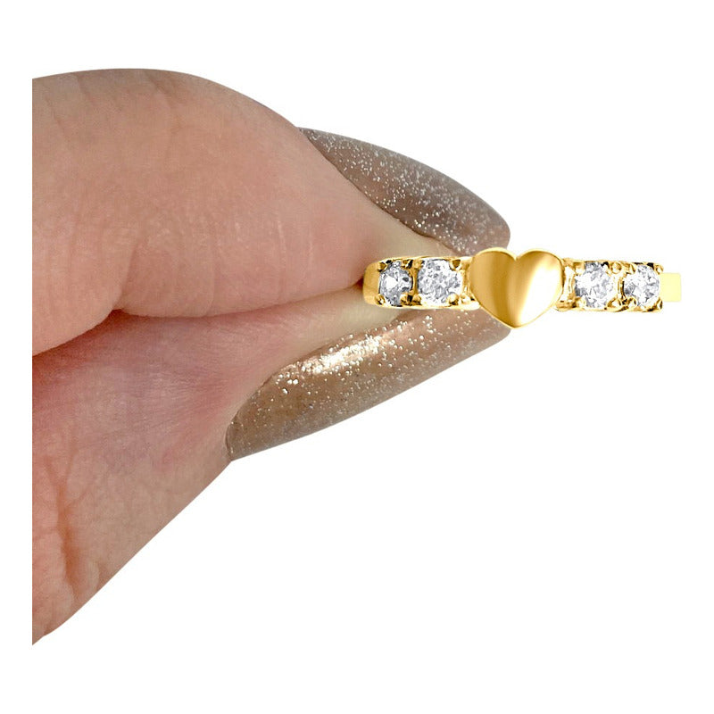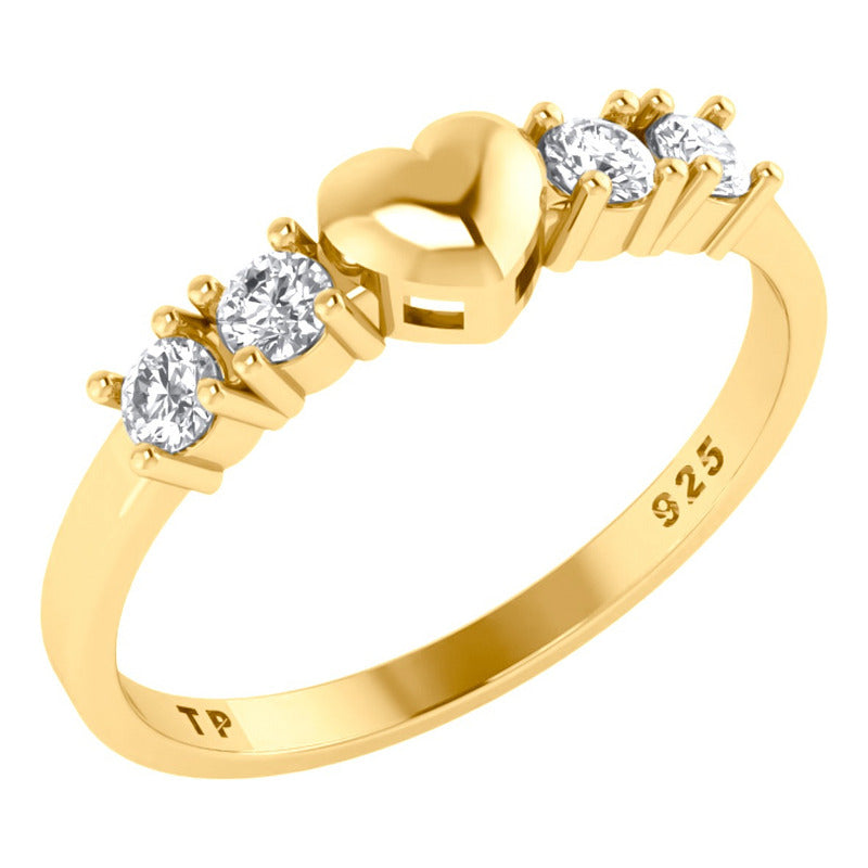 Anel Coração Sólido Prata 925 Dourada Ouro 18k - Zircônia Tamanho 18